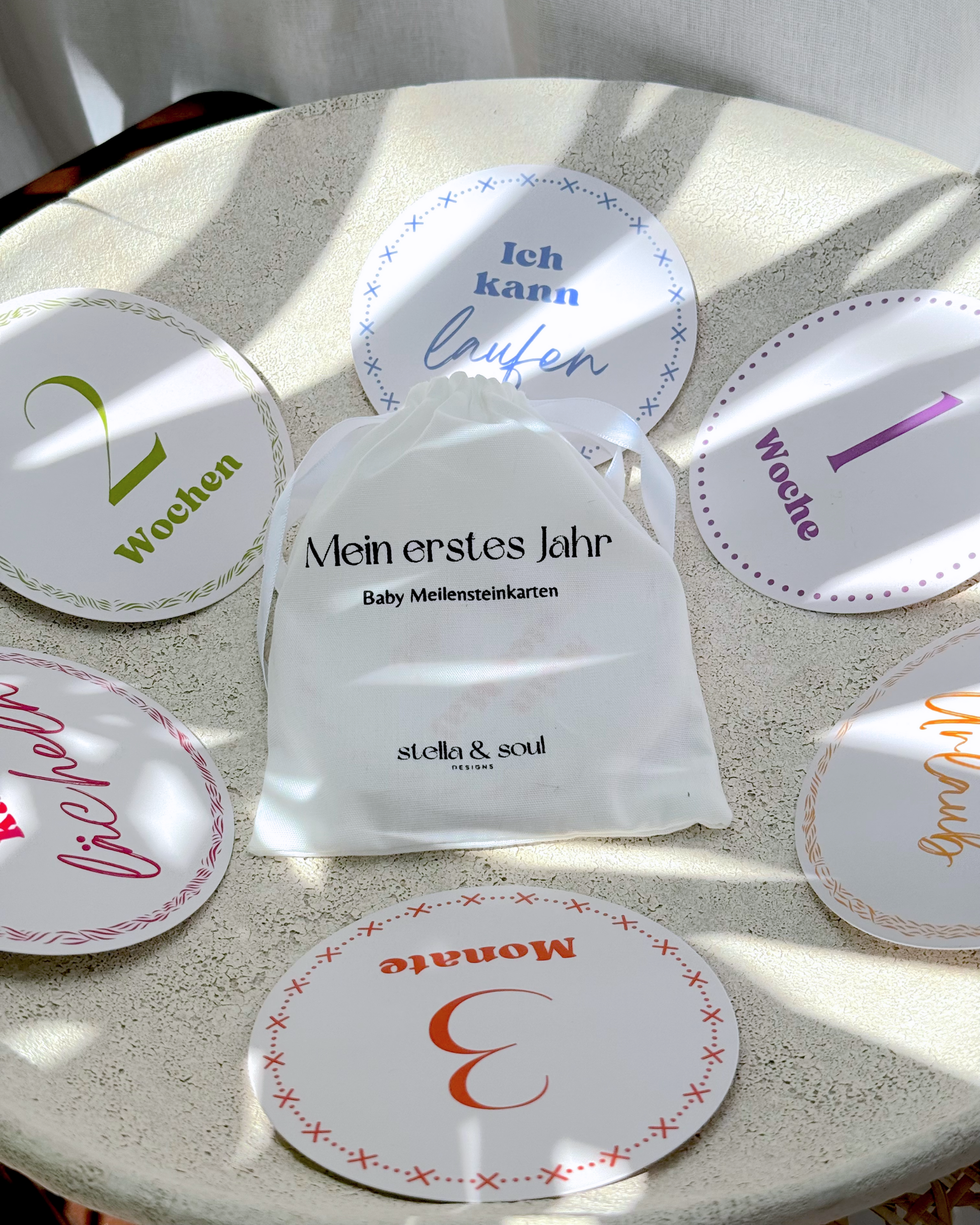 Für das erste Babyjahr: Unsere Meilensteinkarten im Leinenbeutel